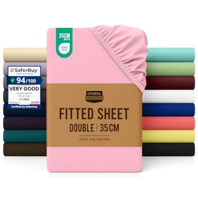 Utopia Bedding Fitted Sheet Double, Pink Deep Pocket 14 inch (35 cm) Easy Care Soft Brushed Polyester Microfibre Fabric Shrinkage and Fade Resistant Bottom