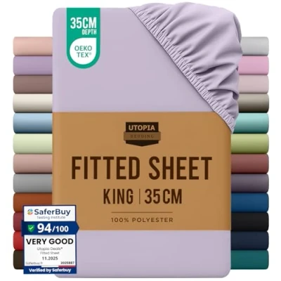 Super King Fitted Bed Sheet - Includes 1 Utopia Bedding fitted sheet 150x200cm with 35 cm deep pockets. Brushed Polyester Microfiber - The brushed microfiber fabric makes the fitted sheet exceptionally soft, smooth and comfortable, keeping you warm in winter and cool in summer. All-Around Elastic - The fitted sheet easily conforms to the mattress with all-around elasticity, giving the bed a beautiful finish. Shrink And Fade Resistant - The microfiber material is processed to be shrink and fade resistant, which contributes to the durability of the fabric. Easy Care - Machine wash cold, gentle cycle, do not bleach, tumble dry on low heat and iron on low heat
