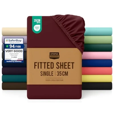 Utopia Bedding Fitted Sheet Single, Burgundy Deep Pocket 14 inch (35 cm) Easy Care Soft Brushed Microfibre Fabric Shrinkage and Fade Resistant Bottom