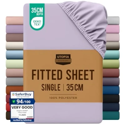 Single Fitted Bed Sheet - Includes 1 Utopia Bedding fitted sheet 90x190cm with 35 cm deep pockets. Brushed Polyester Microfiber - The brushed microfiber fabric makes the fitted sheet exceptionally soft, smooth and comfortable, keeping you warm in winter and cool in summer. All-Around Elastic - The fitted sheet easily conforms to the mattress with all-around elasticity, giving the bed a beautiful finish. Shrink And Fade Resistant - The microfiber material is processed to be shrink and fade resistant, which contributes to the durability of the fabric. Easy Care - Machine wash cold, gentle cycle, do not bleach, tumble dry on low heat and iron on low heat