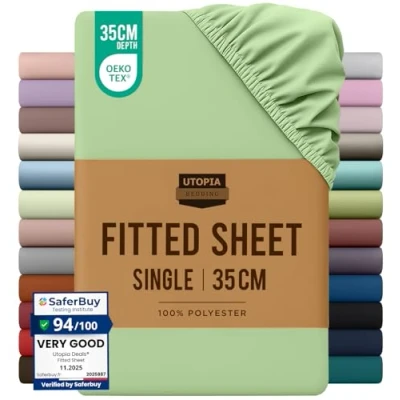 Single Fitted Bed Sheet - Includes 1 Utopia Bedding fitted sheet 90x190cm with 35 cm deep pockets. Brushed Polyester Microfiber - The brushed microfiber fabric makes the fitted sheet exceptionally soft, smooth and comfortable, keeping you warm in winter and cool in summer. All-Around Elastic - The fitted sheet easily conforms to the mattress with all-around elasticity, giving the bed a beautiful finish. Shrink And Fade Resistant - The microfiber material is processed to be shrink and fade resistant, which contributes to the durability of the fabric. Easy Care - Machine wash cold, gentle cycle, do not bleach, tumble dry on low heat and iron on low heat