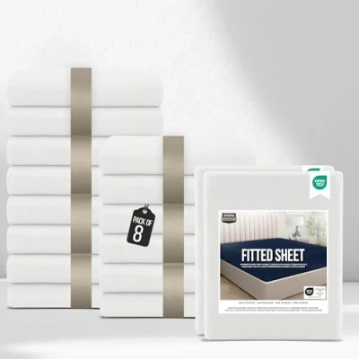 Utopia Bedding Super King Fitted Bed Sheet - Includes 8 fitted sheets 180x200cm by Utopia Bedding with 35 cm deep pockets. Brushed Polyester Microfiber - The brushed microfiber fabric makes the fitted sheet exceptionally soft, smooth and comfortable, keeping you warm in winter and cool in summer. All-Around Elastic - The fitted sheet easily conforms to the mattress with all-around elasticity, giving the bed a beautiful finish. OEKO-TEX Certified – Our Fitted sheets are certified to meet global safety requirements, offering trusted quality and comfort. Shrink And Fade Resistant - The microfiber material is processed to be shrink and fade resistant, which contributes to the durability of the fabric.
