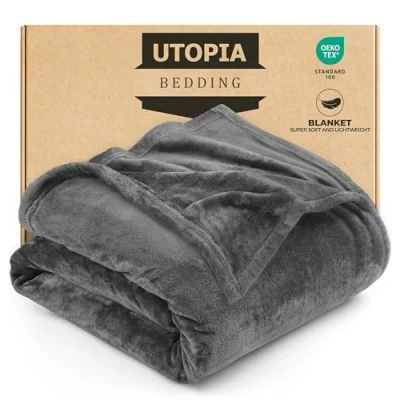 Utopia Bedding Flannel Fleece Blanket Grey (Gray, Queen)
