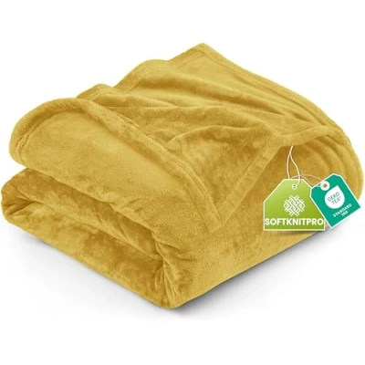 Utopia Bedding Fleece King Blanket, Soft, Cosy 300 GSM Fluffy Blankets For Sofas, Bed, Couches [Gold, 259x228 cm]