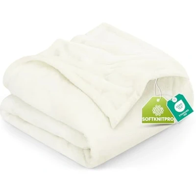 Utopia Bedding Fleece Queen Blanket, Soft, Cosy 300 GSM Fluffy Blankets For Sofas, Bed, Couches [Ivory, 228x228 cm]