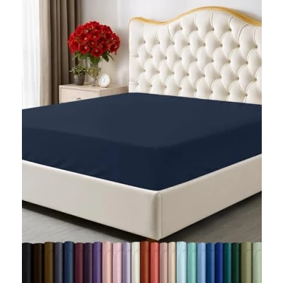 Utopia Bedding Full Fitted Sheet Bottom Deep Pocket Soft Microfiber Shrinkage and Fade Resistant Easy Care 1 Only (Navy)
