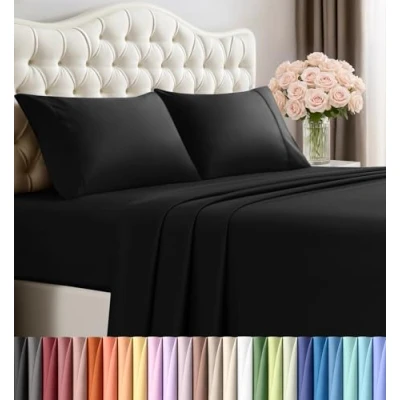 King Sheet Set – 4-piece soft sheets king size includes flat sheet (105" x 102"), fitted sheet (78" x 80") with 15" deep pocket and 2 pillowcases (20" x 40"). Soft, cooling, and durable king size sheets set. Ideal sheets for king size bed set All-Around Elastic for a Perfect Fit – The fitted sheet in this sheet set features durable all-around elastic that ensures a snug, secure fit on any king size mattress, giving your bed a smooth, tailored look, this fitted sheet stays in place all night and complements the rest of your bed sheets. Luxury in Every Shade – Utopia Bedding sheet and pillowcase sets come in a range of colors to complement any décor, creating a stylish and inviting sleep sanctuary. Ultra-Soft & Incredibly Cozy – Crafted from premium brushed polyester microfiber on both sides, these sheets are incredibly soft, breathable, and silky smooth. Exceptional Quality at a Great Price – Enjoy hotel-quality comfort at a fraction of the cost. These sheets provide unmatched softness and durability without the hefty price tag of high-end brands OEKO-TEX Certified & Skin-Friendly – This bed sheet set is Standard 100 by OEKO-TEX certified, ensuring it meets the highest safety standards and is free from harmful chemicals, making it safe for all skin types Easy Care & Maintenance – Machine washable for hassle-free cleaning. Tumble dry or iron on low heat, and avoid bleach to maintain long-lasting softness and quality.