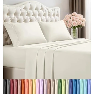 Utopia Bedding King Bed Sheets Set 4 Piece Brushed Microfiber Shrinkage and Fade Resistant Easy Care (King, Ivory)