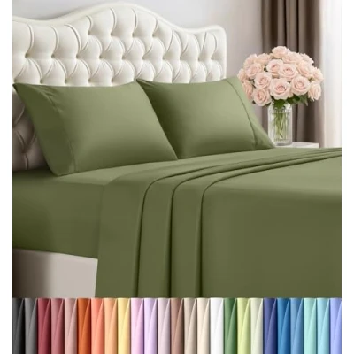 Utopia Bedding King Bed Sheets Set 4 Piece Brushed Microfiber Shrinkage and Fade Resistant Easy Care (King, Olive)