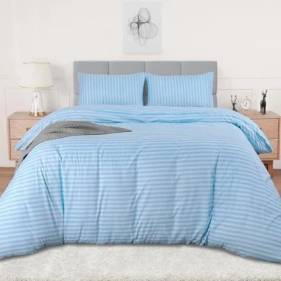 Utopia Bedding King Striped Spa Blue Print Duvet Cover Set Soft Microfibre Polyester Quilt
