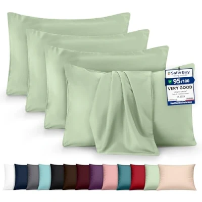 Utopia Bedding Pillow Cases 4 Pack Standard Size 50x75 cm 100% Brushed Microfiber Pillowcases with Envelope Closure Wrinkle, Fade, Stain Resistant Sage