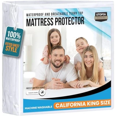 Utopia Bedding Premium Waterproof Terry Mattress Protector California King 200 GSM, Cover, Breathable, Fitted Style with Stretchable Pockets