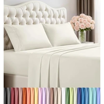 Utopia Bedding Queen Bed Sheets Set 4 Piece Brushed Microfiber Shrinkage and Fade Resistant Easy Care (Queen, Ivory)