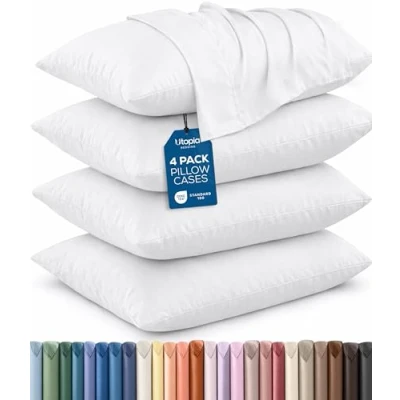 Utopia Bedding Standard Pillowcases 4 Pack Envelope Closure Soft Brushed Microfiber Fabric Shrinkage and Fade Resistant Pillow Covers Size 20 X 26 Inches (Standard, White)