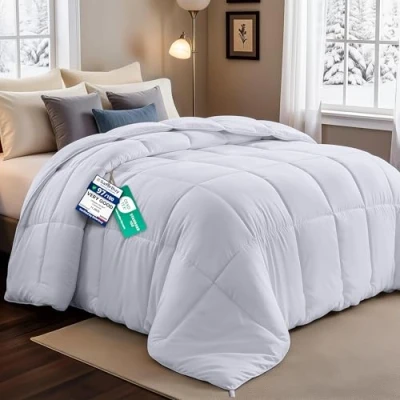 CONVENIENT SIZE - Plush all season fiberfill, Super King sized down alternative duvet measures 220 cm x 260 cm. Our 7.5 tog comforter is generously filled with fiber filling and is sewn to perfection for ultimate luxury and comfort. DURABLE AND LONG LASTING - 100 % polyester, 280 GSM solid pattern duvet is highly durable with a high tensile strength making it strong and resistant against rip or tear. STYLISH QUILTED DESIGN - Featuring an exquisite box-stitching design with piped edges, our ultra-soft, all-season microfiber comforter does not only look elegant but ensures that filing stays evenly distributed thereby keeping you cosy all night long. SUPERIOR SLEEPING EXPERIENCE - Luxuriously brushed microfiber cover filled with siliconized fiber filling provides exceptional softness and a gentle feel for a deeper and restorative sleep. WASHING CARE - Machine wash the duvet in a gentle cycle with cold water. Sun-dry or tumble dry on low when needed.
