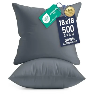 Utopia Bedding Throw Pillows Insert (Pack of 2, Grey) 18 x Inches Bed and Couch Indoor Decorative Pillow