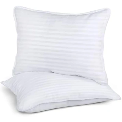 Cot Bed Pillow Pack - Pack of 2 cot bed pillows made with the perfect blend of softness and firmness to ensure a perfect night's sleep for your toddler (Intended for Age 2 and up) Packaging - This package contains 2 pillow inserts in a poly bag, however due to vacuum packaging they might appear as one large pillow Dimension - Each pillow measures 40x60 cm (16x24 inches) Durable - 250 Thread Count, Satin Stripe Polycotton Cover Fabric; making the pillow durable! Pair Pack - Comes in pair packaging for a complete outlook for your toddler's bed Care Instruction - It is recommended to spot clean the pillow or hand wash the fabric