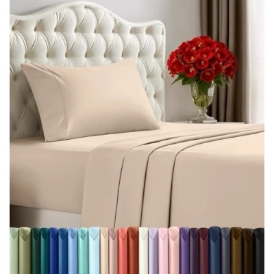 Utopia Bedding Twin Bed Sheets Set 4 Piece Brushed Microfiber Shrinkage and Fade Resistant Easy Care (Twin, Beige)