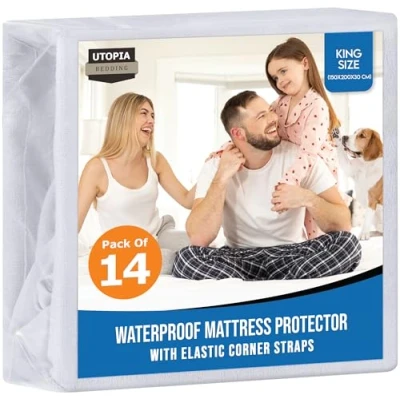 Utopia Bedding Waterproof Strap Mattress Protector King Bed 150 x 200 cm White, (Pack of 14), Fits Up to 30 Deep Mattresses, Premium Terry Protector, 4 Side Elastic Cover