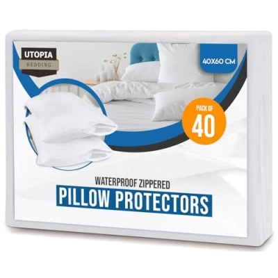 Pillow Protector: Pack of 40 pillow encasement perfectly fits pillow measuring 40 cm x 60 cm. (Note: These are pillow protectors, and not pillows) Zippered Encasement: High quality zip and double hemmed stitching provide protection by keeping your pillow covered and secure all times especially from bed bugs 100% Waterproof: High quality TPU backing on all sides of the lid makes it highly waterproof and repels dust mites and bacteria Soft & Comfortable: Polyester knitted jersey fabric provides incredible comfort Care Instructions: Machine washable and tumble dryable for easy maintenance