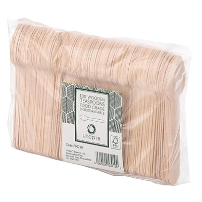 Utopia Birch Wood Teaspoon 4.25inch / 11cm, F90210 000000 B01010, Pack of 100