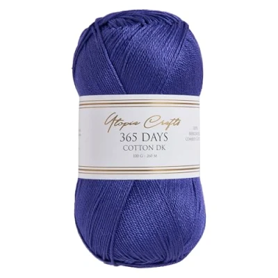 Utopia Crafts 365 Days Mercerised Combed Cotton DK Yarn for Knitting & Crochet (Deep Blue, 100g)