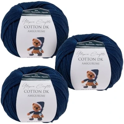 Utopia Crafts Amigurumi Cotton DK Yarn for Crochet and Knitting 50% Cotton, Acrylic Blended, 3X 50g (Dark Blue)