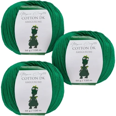 Utopia Crafts Amigurumi Cotton DK Yarn for Crochet and Knitting 50% Cotton, Acrylic Blended, 3X 50g (Dark Green)