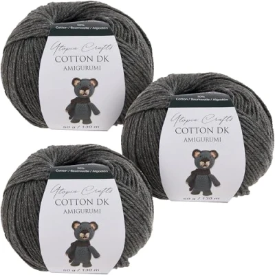 Utopia Crafts Amigurumi Cotton DK Yarn for Crochet and Knitting 50% Cotton, Acrylic Blended, 3X 50g (Dark Grey)