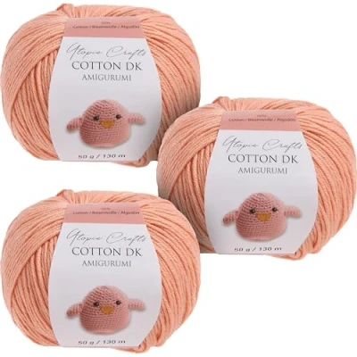Utopia Crafts Amigurumi Cotton DK Yarn for Crochet and Knitting 50% Cotton, Acrylic Blended, 3X 50g (Flesh)