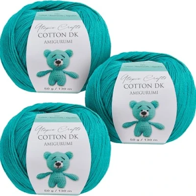 Utopia Crafts Amigurumi Cotton DK Yarn for Crochet and Knitting 50% Cotton, Acrylic Blended, 3X 50g (Jade Green)