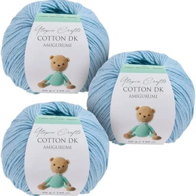 Utopia Crafts Amigurumi Cotton DK Yarn for Crochet and Knitting 50% Cotton, Acrylic Blended, 3X 50g (Light Blue)