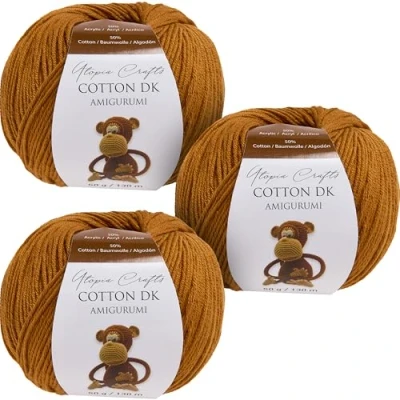 Utopia Crafts Amigurumi Cotton DK Yarn for Crochet and Knitting 50% Cotton, Acrylic Blended, 3X 50g (Light Brown)
