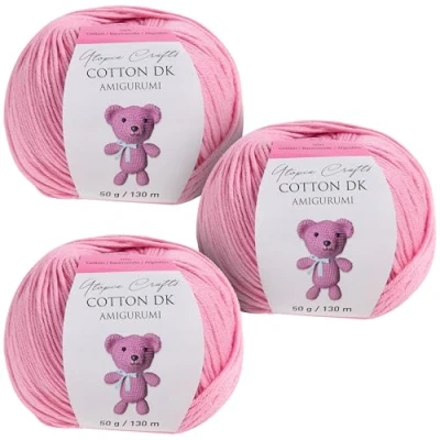 Utopia Crafts Amigurumi Cotton DK Yarn for Crochet and Knitting 50% Cotton, Acrylic Blended, 3X 50g (Light Pink)