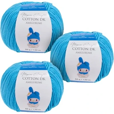 Utopia Crafts Amigurumi Cotton DK Yarn for Crochet and Knitting 50% Cotton, Acrylic Blended, 3X 50g (Medium Blue)