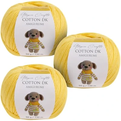 Utopia Crafts Amigurumi Cotton DK Yarn for Crochet and Knitting 50% Cotton, Acrylic Blended, 3X 50g (Medium Yellow)