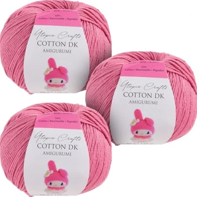 Utopia Crafts Amigurumi Cotton DK Yarn for Crochet and Knitting 50% Cotton, Acrylic Blended, 3X 50g (Pale Pink)