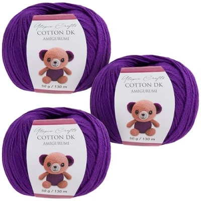 Utopia Crafts Amigurumi Cotton DK Yarn for Crochet and Knitting 50% Cotton, Acrylic Blended, 3X 50g (Purple)