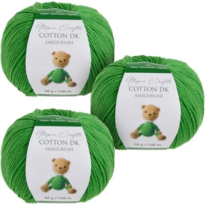 Utopia Crafts Amigurumi Cotton DK Yarn for Crochet and Knitting 50% Cotton, Acrylic Blended, 3X 50g (Strong Green)