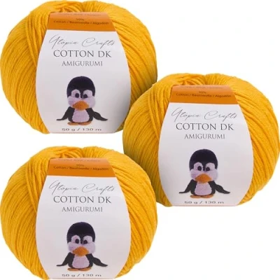 Utopia Crafts Amigurumi Cotton DK Yarn for Crochet and Knitting 50% Cotton, Acrylic Blended, 3X 50g (Strong Yellow)