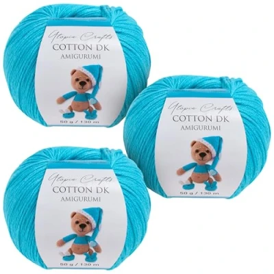Utopia Crafts Amigurumi Cotton DK Yarn for Crochet and Knitting 50% Cotton, Acrylic Blended, 3X 50g (Turquoise Blue)
