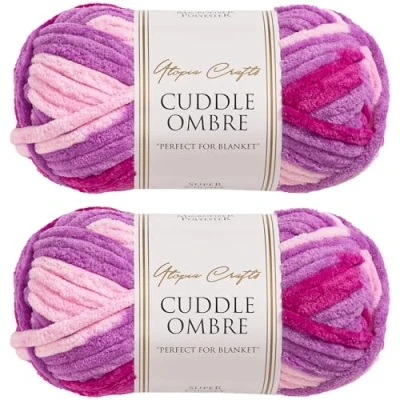 Utopia Crafts Cuddle Ombre Super Chunky Chenille Soft Yarn for Knitting and Crochet 2X 100g (Berry Blossom, 100g)