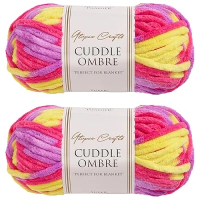 Utopia Crafts Cuddle Ombre Super Chunky Chenille Soft Yarn for Knitting and Crochet 2X 100g (Candy Sunshine, 100g)