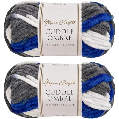 Utopia Crafts Cuddle Ombre Super Chunky Chenille Soft Yarn for Knitting and Crochet 2X 100g (Midnight Sky, 100g)