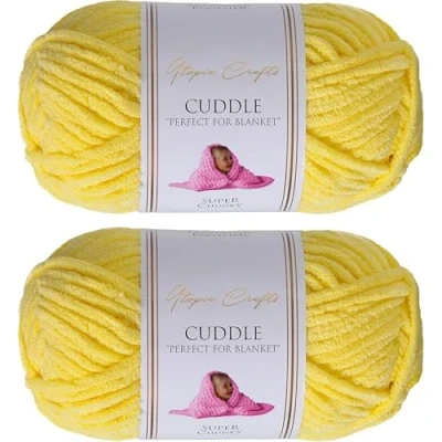Utopia Crafts Cuddle Super Chunky Chenille Soft Yarn for Knitting and Crochet 2X 100g (Lemon)