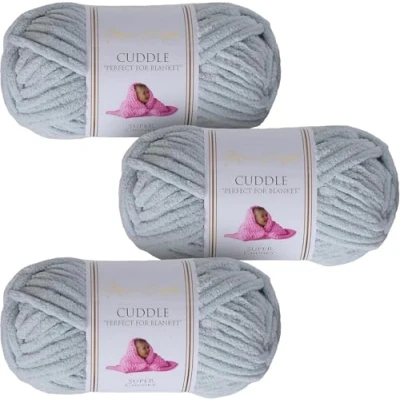 Utopia Crafts Cuddle Super Chunky Chenille Soft Yarn for Knitting and Crochet 3X 100g (Light Grey)