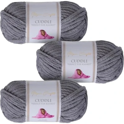 Utopia Crafts Cuddle Super Chunky Chenille Soft Yarn for Knitting and Crochet 3X 100g (Medium Grey)