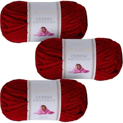 Utopia Crafts Cuddle Super Chunky Chenille Soft Yarn for Knitting and Crochet 3X 100g (Wine)