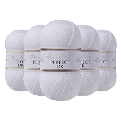 Utopia Crafts DK Double Knitting Yarn, 5X 100g (White)
