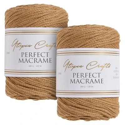 Utopia Crafts Perfect Macrame Cord 3mm 2X 200g (Golden Tan)